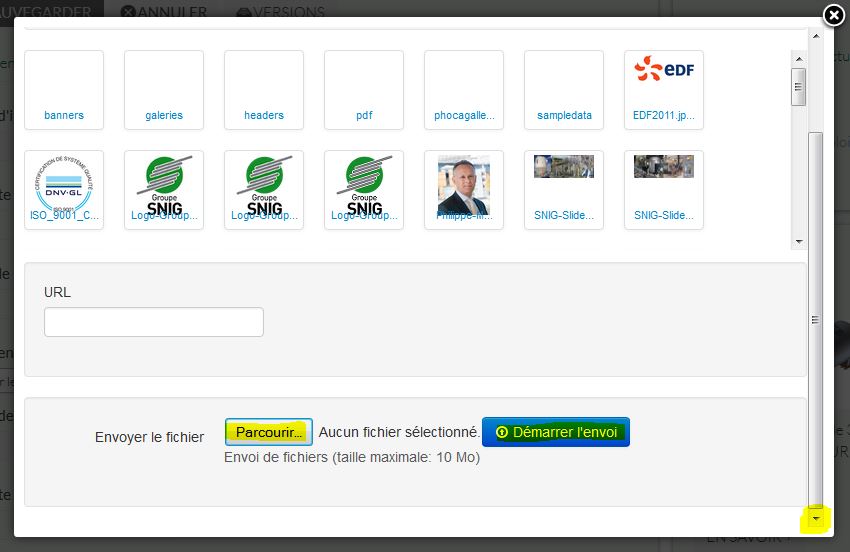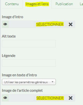 > Depuis votre ordinateur: choisir une image d'intro et une image pour l'article complet qui se placeront automatiquement (3) et (4) en renseignant 2 champs dans l'onglet "Images et liens": "image d'Intro" et "image de l'article complet" (vous pouvez aussi insérer des images directement dans l'article en utilisant l'outil de l'éditeur "Insérer/éditer une image"). Il est aussi possible de choisir des images déjà présentes sur le serveur (exemple: les logos qualité..).