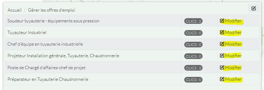 Gestion des offres d'emploi :